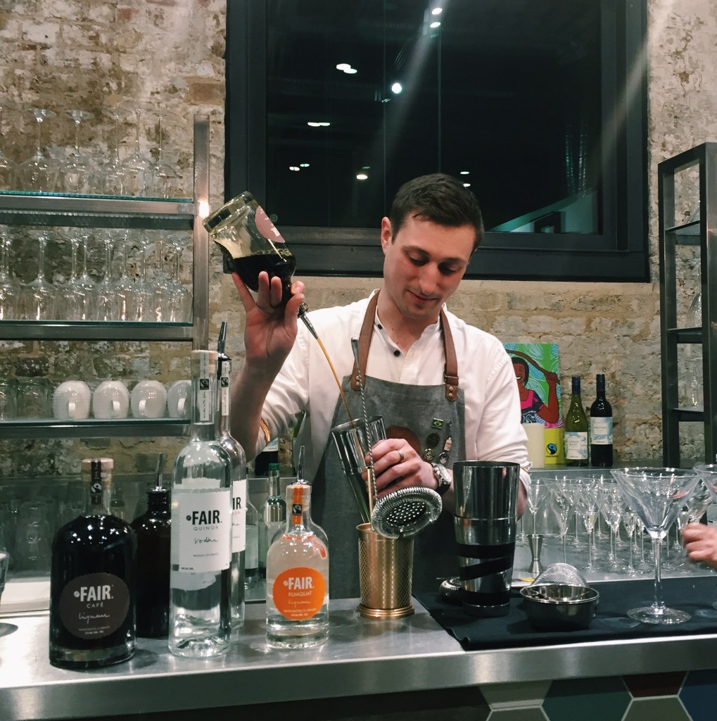On arrival we were invited over to the bar where a bartender was serving up a series of cocktails, made with FAIR – the only Fairtrade certified spirits brand.